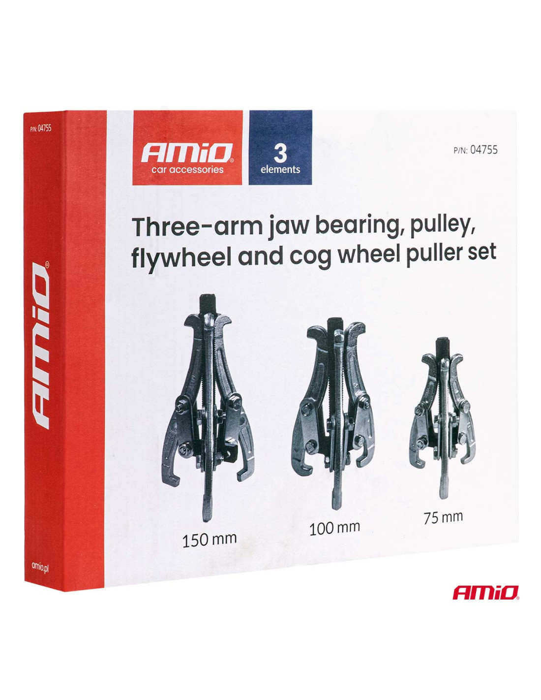 Zestaw trójramiennych ściągaczy do łożysk oraz kół pasowych, zębatych i zamachowych AMIO-04755