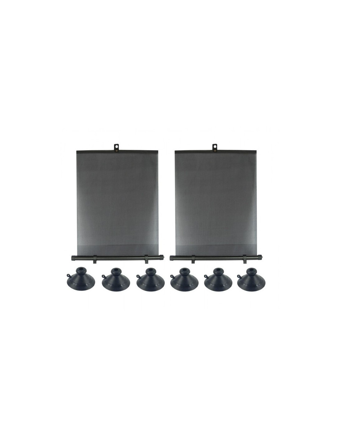 W zestawie 2 rolety przeciwsłoneczne do samochodu z haczykami, 6 przyssawek.