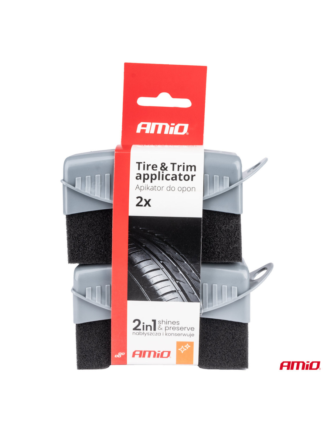Aplikator do opon samochodowych w plastikowej obudowie, miękka gąbka 2 szt. AMIO-04019