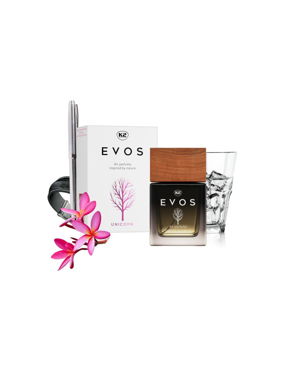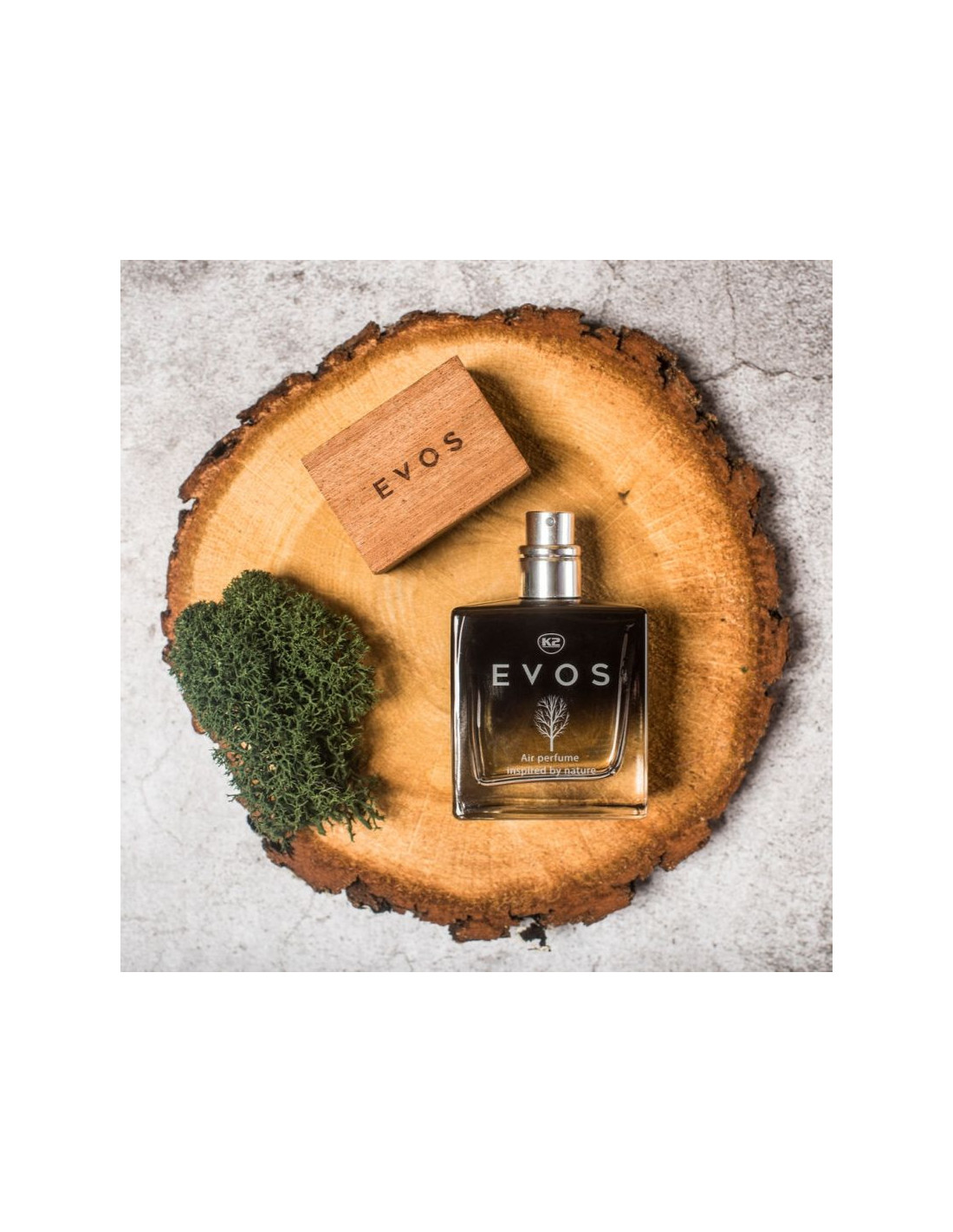 Perfumy do samochodu K2 EVOS to inspirowana naturą, niezwykła kompozycja wyjątkowych nut zapachowych, zaprojektowana z myślą o wnętrzach nowoczesnych aut.