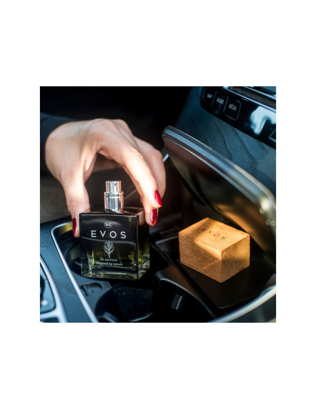 Rozpylony we wnętrzu aromat EVOS nadaje mu elegancji i wytworności, podnosi komfort przebywania w nim. Jazda samochodem staje się przyjemnością, wytchnieniem i ucieczką do wykwintnego świata luksusu. Specjalnie dobrane kompozycje zapachowe z olejkami eterycznymi, urzekają bogactwem i głębią zapachu.
