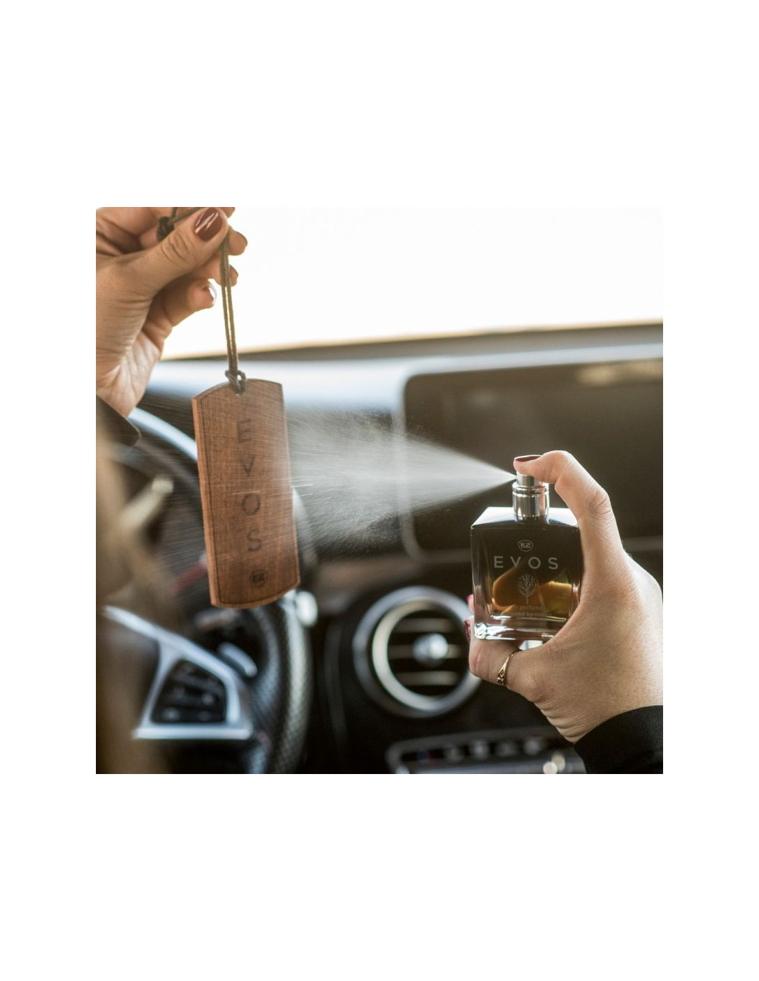 Perfumy samochodowe EVOS są doskonałym sposobem na przedłużenie żywotności drewnianej zawieszki zapachowej K2 Evos. Spryskana nimi zawieszka ponownie napełnia się szlachetnym aromatem, który stopniowo uwalniany jest do wnętrza auta.